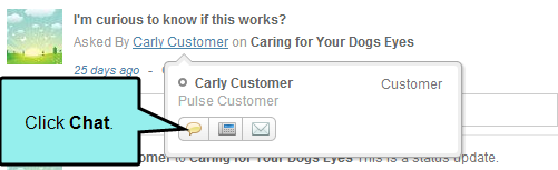 Chat features are available to all registered Pulse users. You can initiate a chat if you are a member of the Customers group. Members of the Administrators and Employees group have additional chat options. See Contacting Registered Users.