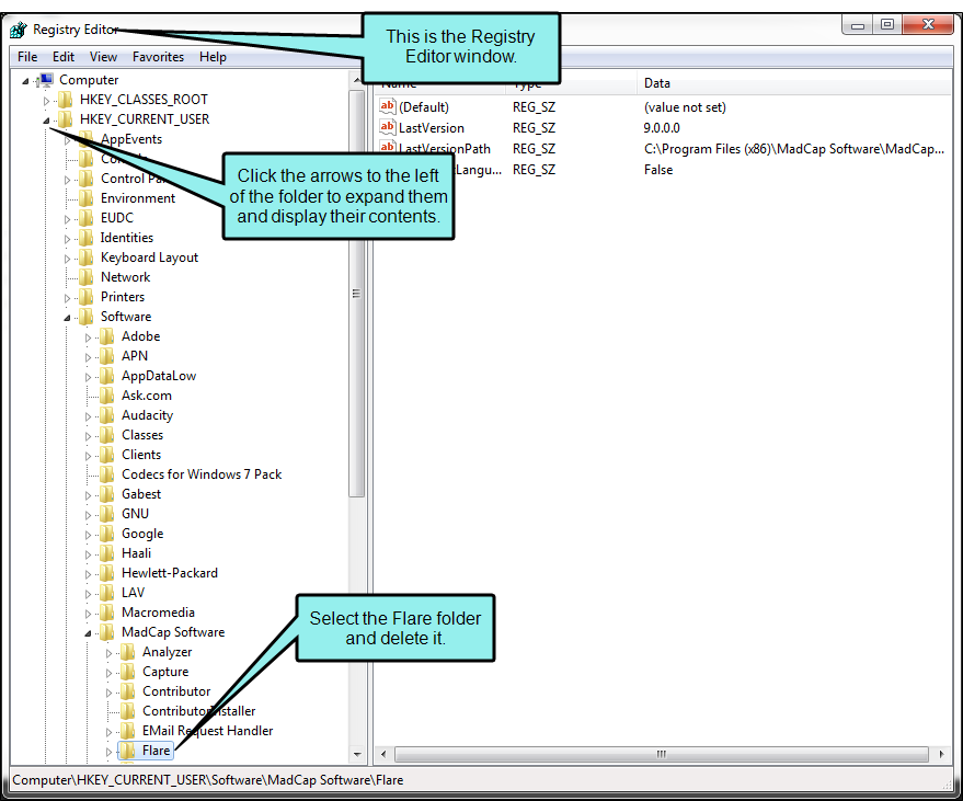 There might be a registry key from a previous version of Flare Desktop in the registry that needs to be removed. To remove it, perform the following steps.