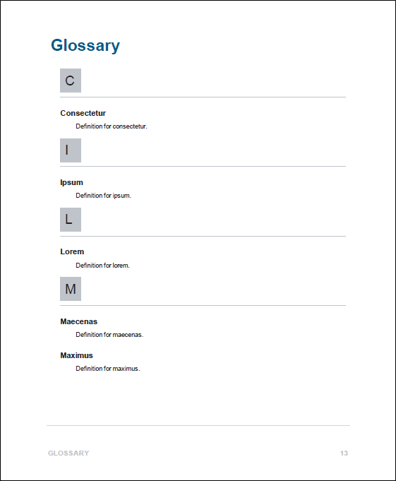 A glossary is a feature that you can add to your output to help users understand the meaning of individual terms. You can include a glossary in both online and print-based output.