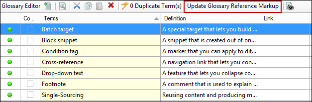 Also, you will notice a button in the local toolbar of the Glossary Editor that is labeled "Update Glossary Reference Markup."