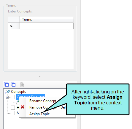 How to Assign Topics to a Concept—Context Menu in Concept Window Pane
