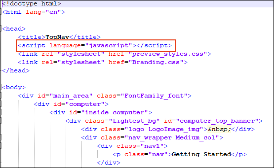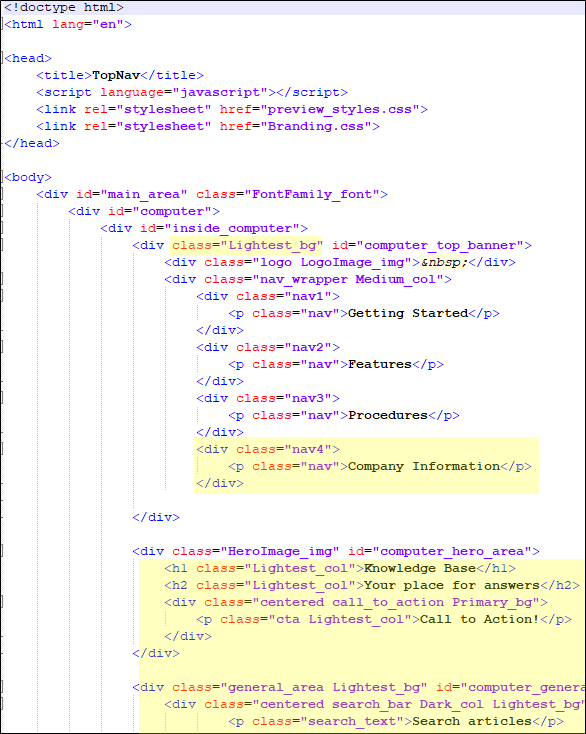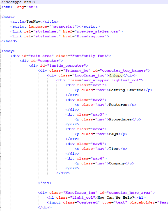 For the large desktop view, the Preview.html file started out looking like this (since it was based on the Top Navigation template):