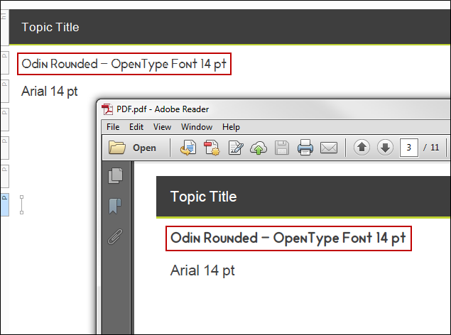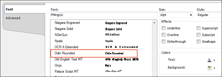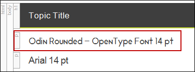 Example You install the OpenType font called "Odin Rounded" to where system fonts are located (e.g., C:\Windows\Fonts). When you use the Flare Desktop user interface to choose a font, this font displays with all the others.