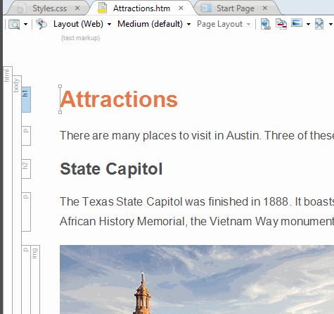 For the properties, you can toggle between a grouped display and an alphabetical display. The Advanced view of the Stylesheet Editor lets you edit more settings than are available in the Simplified view. In addition, the Advanced view lets you see and apply settings to multiple mediums and media queries at the same time.