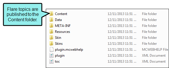 Example As with other output types, the Content folder contains your Flare target's topics: