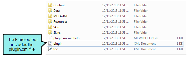 • Eclipse Help Plug-In and Extension Points This output type is particularly useful when you want to create dynamic, searchable content that integrates into the Eclipse workbench as a platform plug-in. Flare Desktop generates an XML-based plug-in file (plugin.xml) that specifies the context Help (csh.xml), index (index.xml), and table of contents (toc.xml) files that Eclipse needs to load your Flare content in the Eclipse Help system.