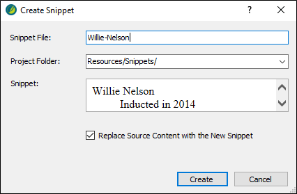In the Snippet File field, type Willie-Nelson, replacing the text in that field.