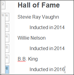Type Hall of Fame, apply the h2 style to it, and press ENTER.