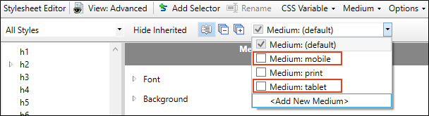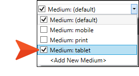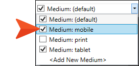 6. Select the drop-down again, and click the check box next to the Medium: mobile item. It opens in the editor.